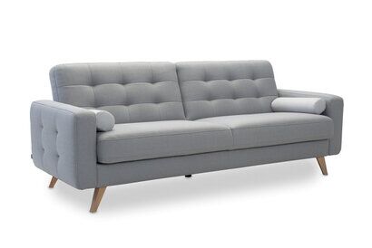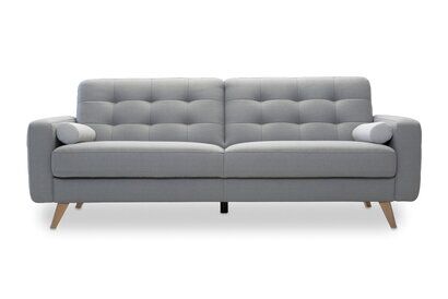 Sofa Nappa to trzyosobowy, nowoczesny model charakterystyczny dla modnej stylizacji skandynawskiej. Tę funkcjonalną sofę wyróżnia prosta linia, a ciekawy design podkreślają geometryczne pikowania na poduszkach oparciowych oraz boczkach. Model posiada ponadczasową formę pasującą praktycznie do każdego wnętrza. Nappę można rozłożyć w systemie Comfort System Technology i skorzystać z funkcji spania. Wyposażona jest również w bardzo przydatny pojemnik na pościel, który pomieści np. dodatkowe poduszki, kołdrę czy koc. Komfort odpoczywania zapewnią nam szerokie poduszki siedziskowe, odpowiednio stabilne podłokietniki oraz bardzo wygodne poduszki oparciowe. Mebel zbudowany został z kompozycji pianek wysokoplastycznych na sprężynach falistych, co zapewnia długi okres użytkowania.