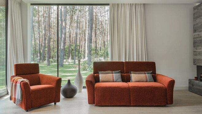 Fotel Nola jest meblem o klasycznych kształtach. Jego mocna, zdecydowana bryła zaprojektowana w stylu minimalistycznym, ma oryginalne podłokietniki odchylone nieco na zewnątrz oraz ruchomy zagłówek, ciekawie zamykający linię oparcia. Wygląda bardzo reprezentacyjnie i szykownie, szczególnie w połączeniu z sofą lub narożnikiem Nola.