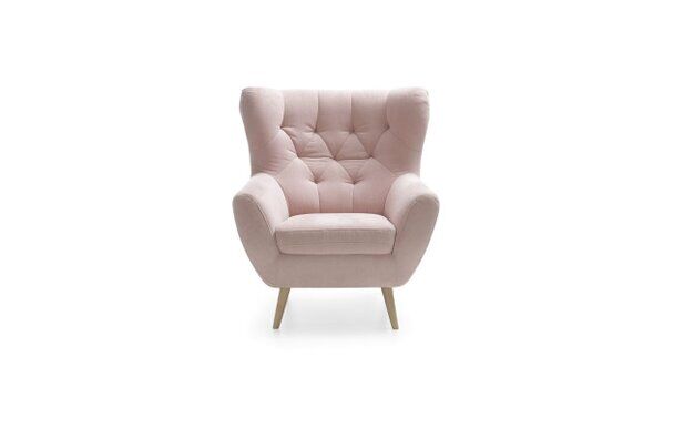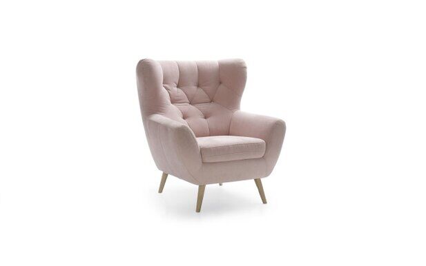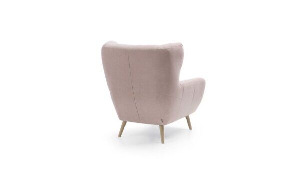 Designerski fotel Voss nawiązuje swoim wyglądem do najmodniejszych trendów na rynku – ma wysokie, smukłe drewniane nóżki (których kolor możesz wybrać z wzornika dostępnego w salonach meblowych), ozdobne pikowania na oparciu oraz modne uszy, dzięki którym wygląda elegancko, a dodatkowo „otula” Cię podczas siedzenia, gwarantując wygodne wsparcie dla głowy.