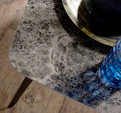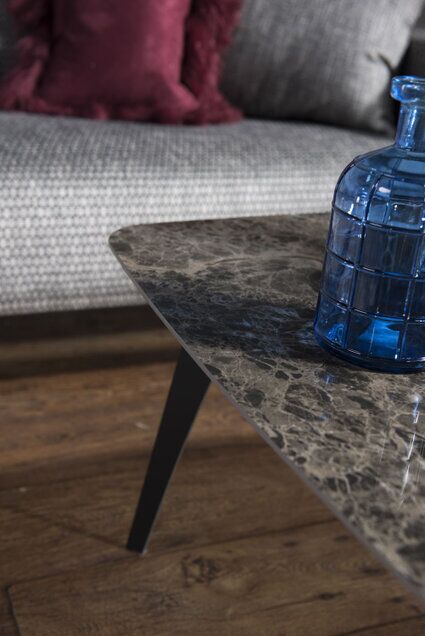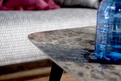 Materiały użyte do wykonania: Spiek kwarcowy + MDF, nóżki czarne metalowe