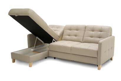 W tym niewielkim narożniku, drzemie potęga lekkiej aranżacji pomieszczeń. Zbudowany w oparciu o funkcję spania i pojemnik na pościel mebel, tworzy klimat ascetycznej wielkości połączonej z elegancją linii i bogatych pikowań. Takie połączenie jest kwintesencją smaku i prostoty dla niedużych pomieszczeń.
