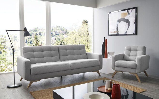Ten mebel, dobrze prezentować się będzie, zarówno we wnętrzach nowoczesnych, jak i tych utrzymanych w stylu vintage lub glamour. Posiada ona efektowne, pikowane siedzisko obszyte dekoracyjnym szwem, które dostępne jest w kilkunastu wersjach kolorystycznych. Sofa Fiord opiera się na stabilnych, drewnianych nogach (do wyboru czarne, białe, dąb bianco lub dąb efekt wosku). Dostępny jest on w oddzielnie lub w zestawie z fotelem i pufą, co pozwala na dopasowanie go do układu danego wnętrza. W zestawie znajdują się opcjonalne 2 podnercza ozdobne.