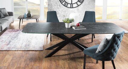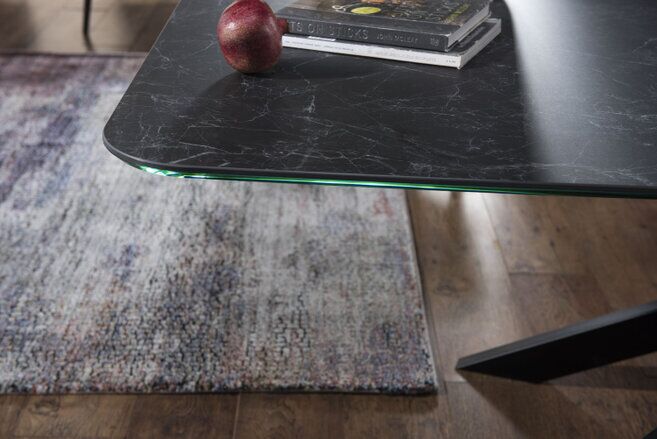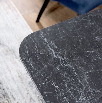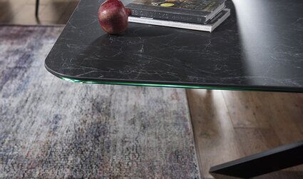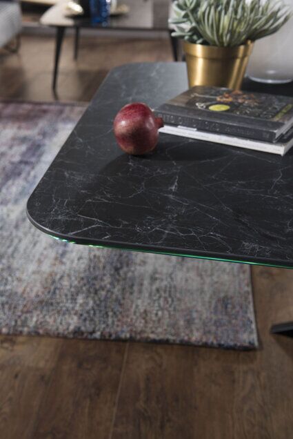 Stół Lafayette to nowoczesne połączenie blatu spiekówego, szkła oraz metalu. Blat stołu wykonany został ze spieku włoskiego Nero Greco mat połączonego ze szkłem które zostało podcięte, aby nadać lekkości całemu meblowi. Dodatkowo kształt jest nie jest typowym [prostokątem ale tzn "beczką". Metalowa podstawa zostałam zaprojektowana zgodnie z najnowszymi trendami.